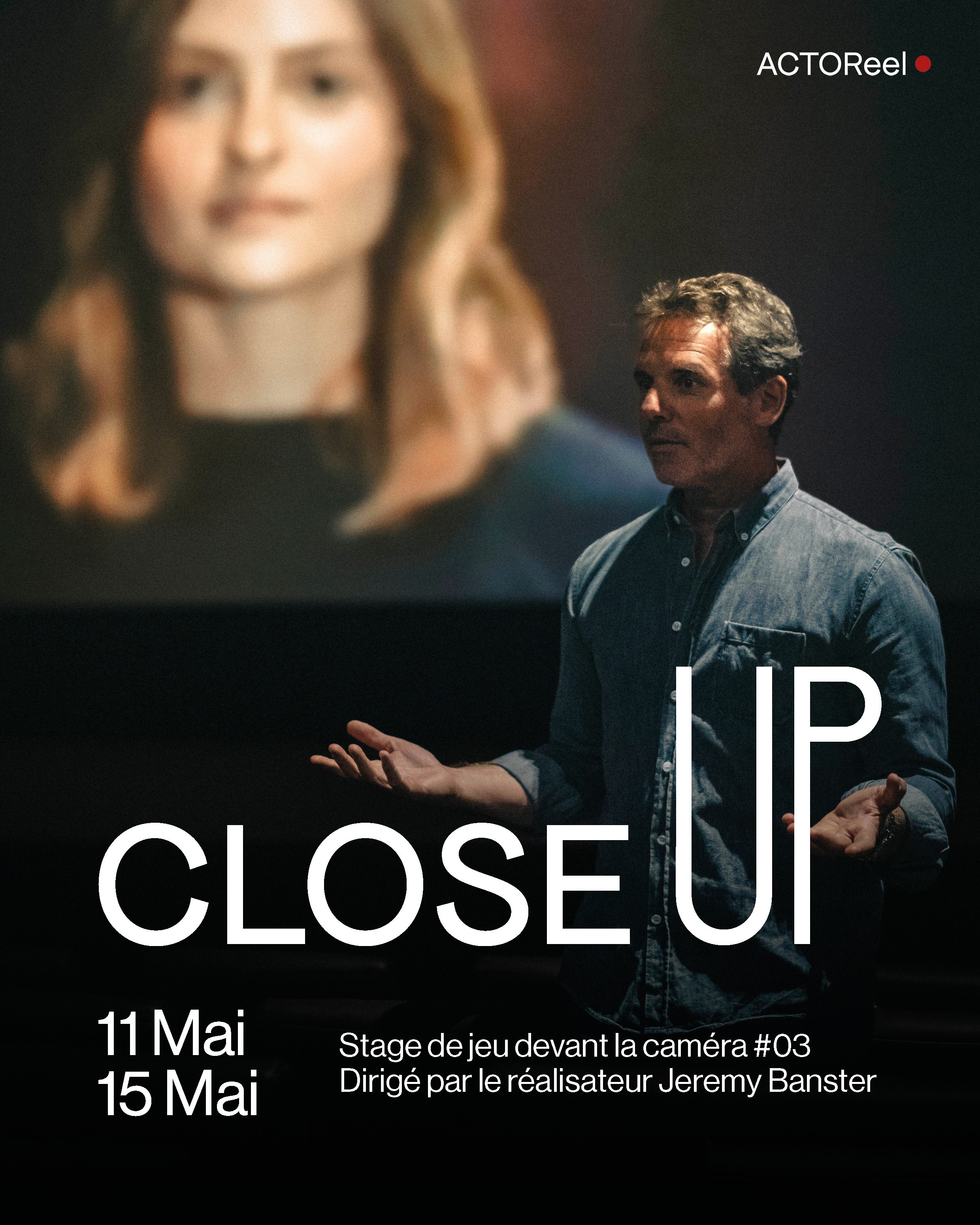 🇫🇷 CLOSE UP est un stage intensif de jeu face caméra avec le producteur et réalisateur Jeremy Banster.